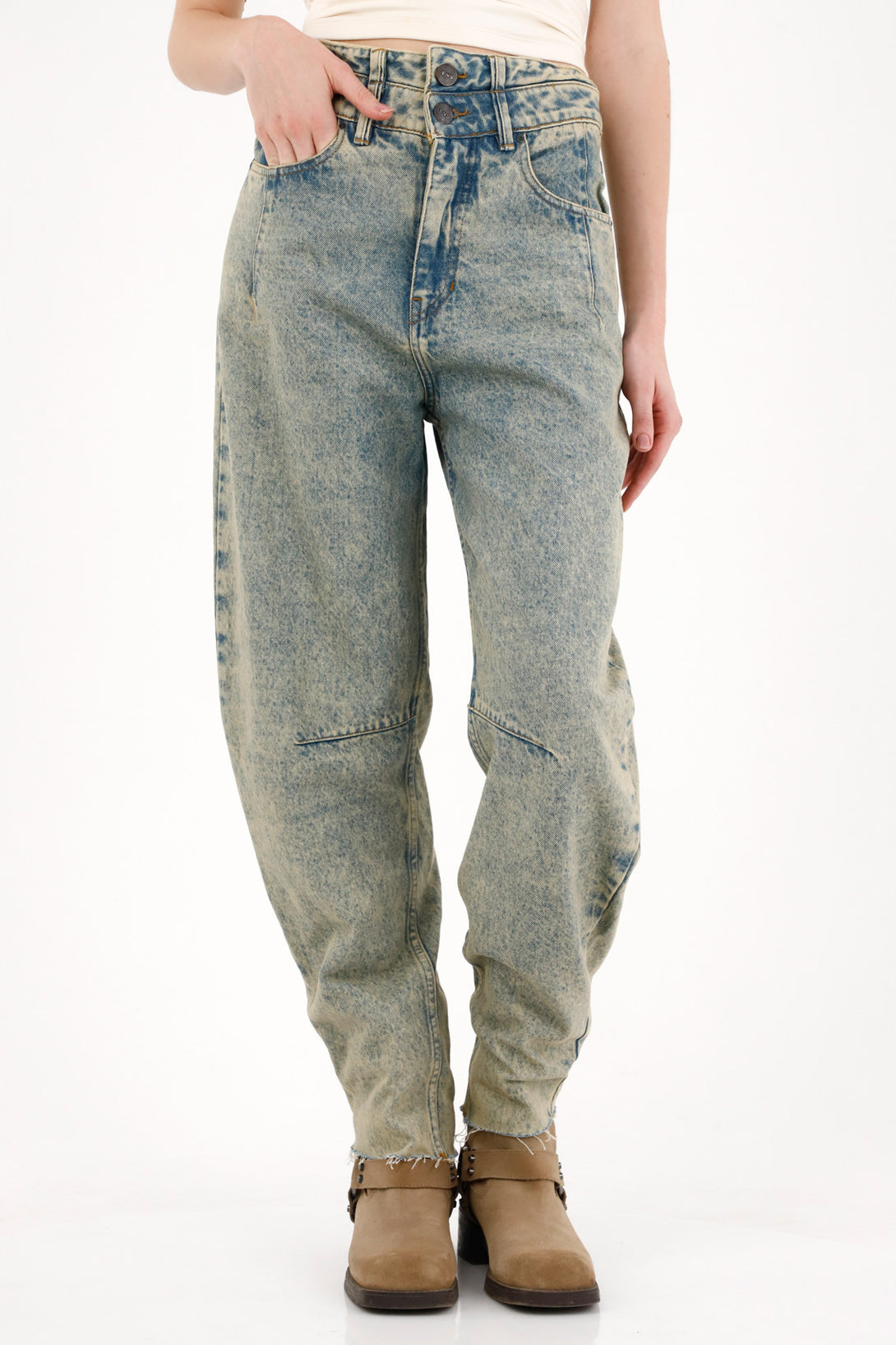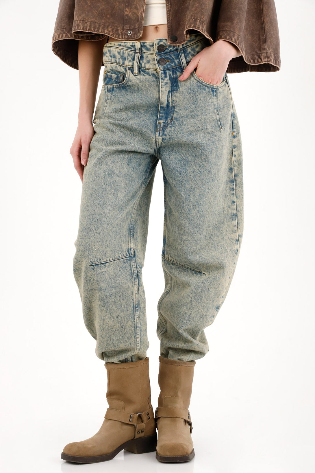 ¡Un slouchy que no se anda con rodeos! Doble pretina, detalles que marcan la diferencia y un lavado acid wash que lleva la actitud al máximo.