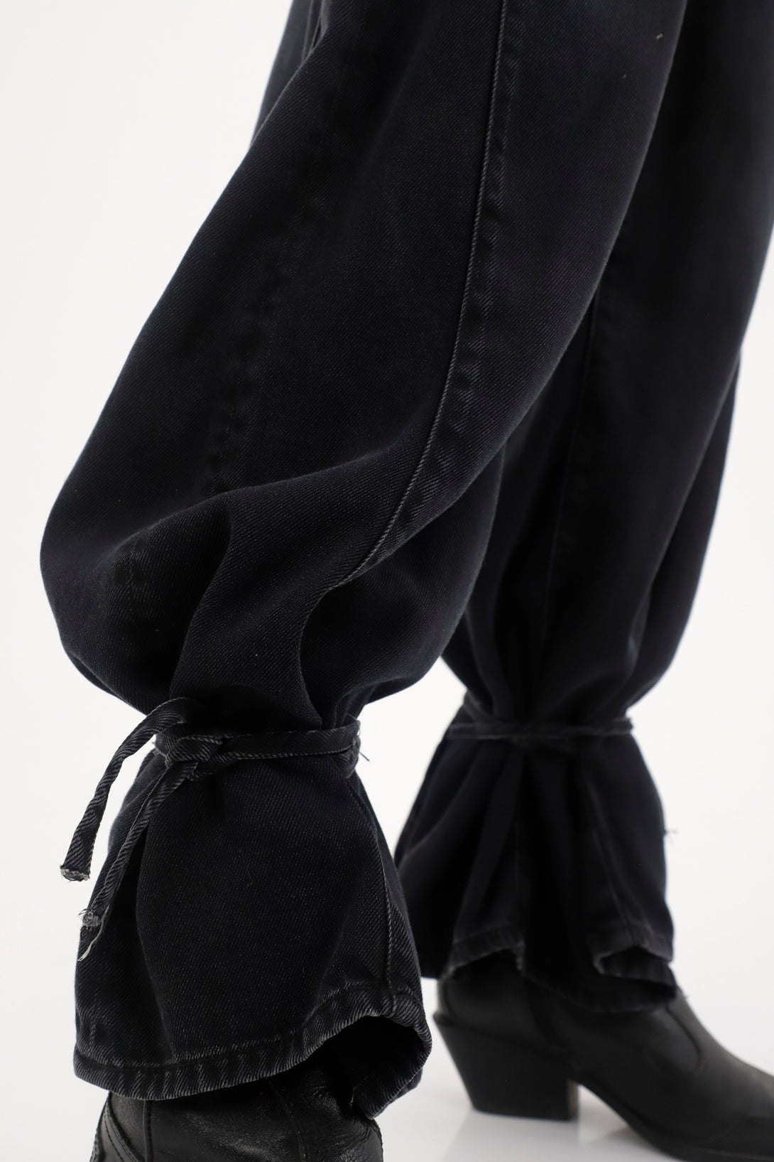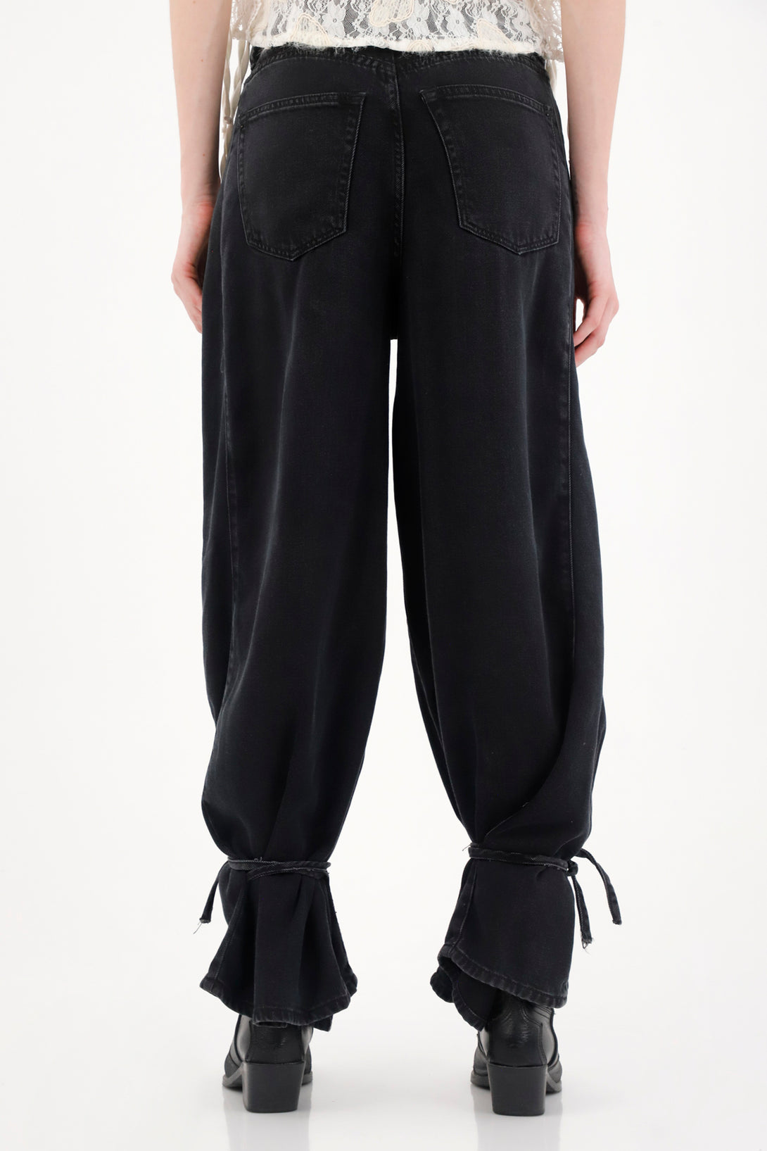 Jean Wide Leg con amarres en bota negro para mujer
