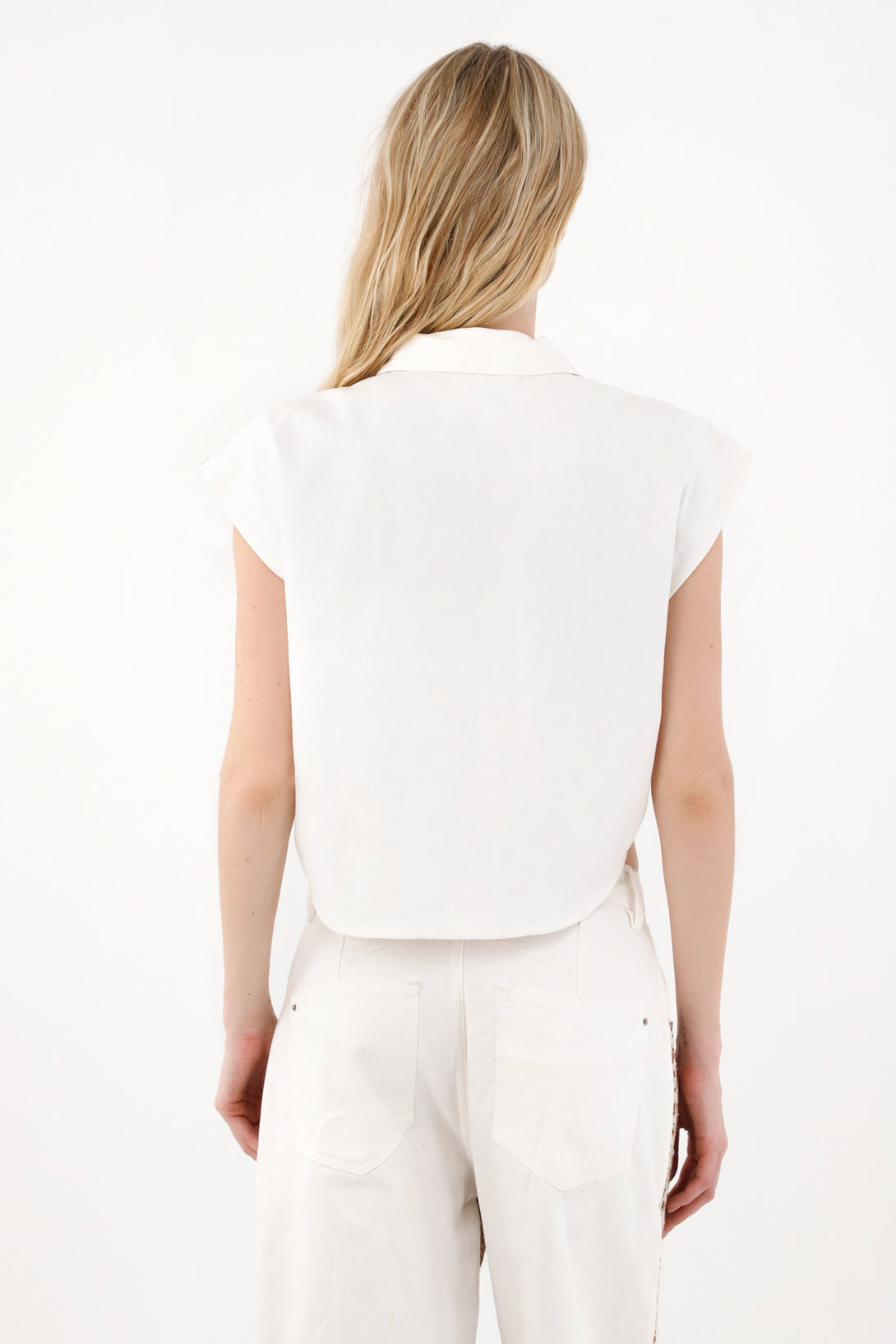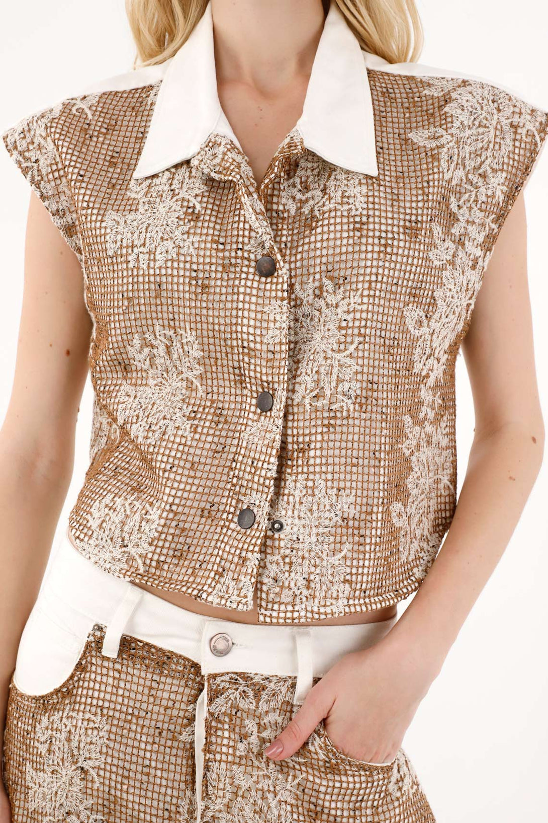 Chaleco con tela bordada sobrepuesta crudo para mujer