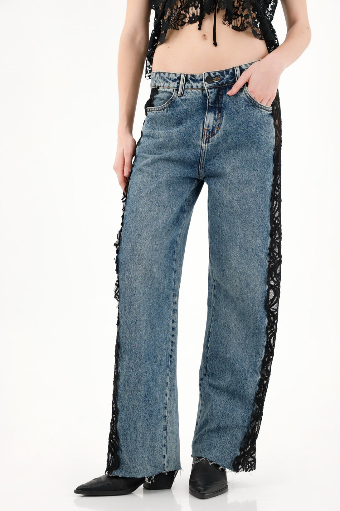 Women's Wide Leg Jeans with Contrast Lace