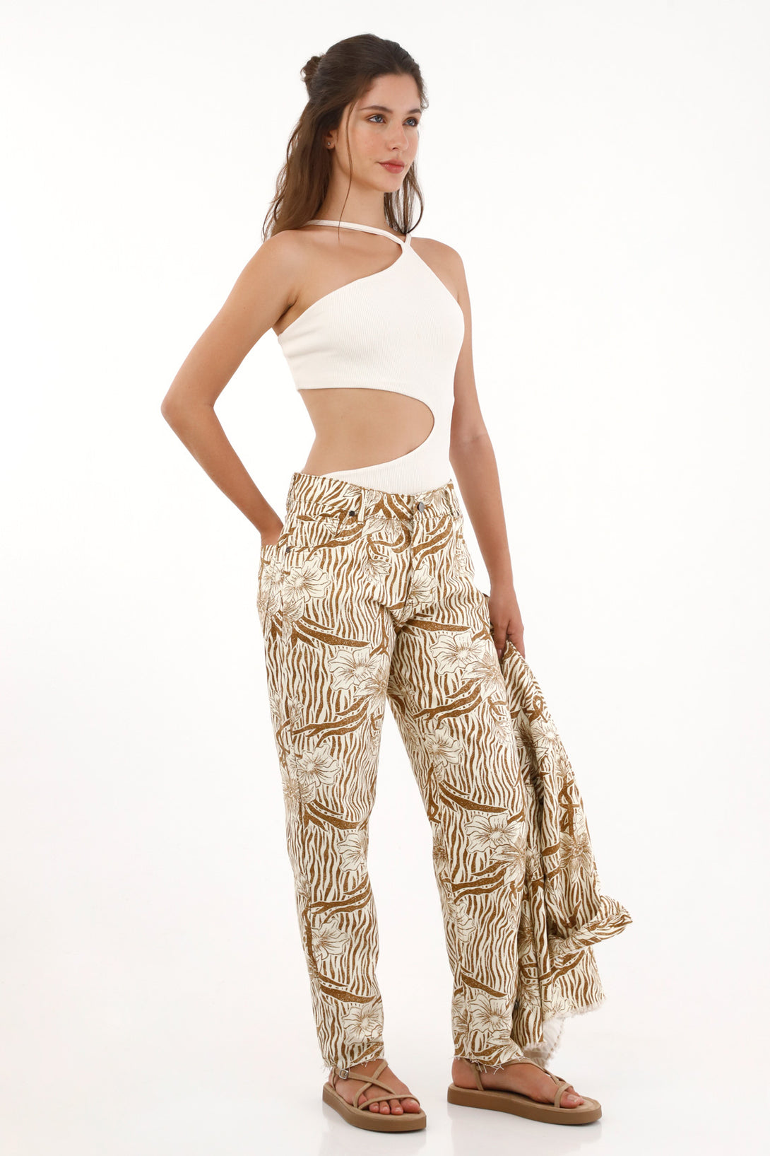 Make a bold style statement with these mom jeans featuring an eye-catching floral and animal print design!