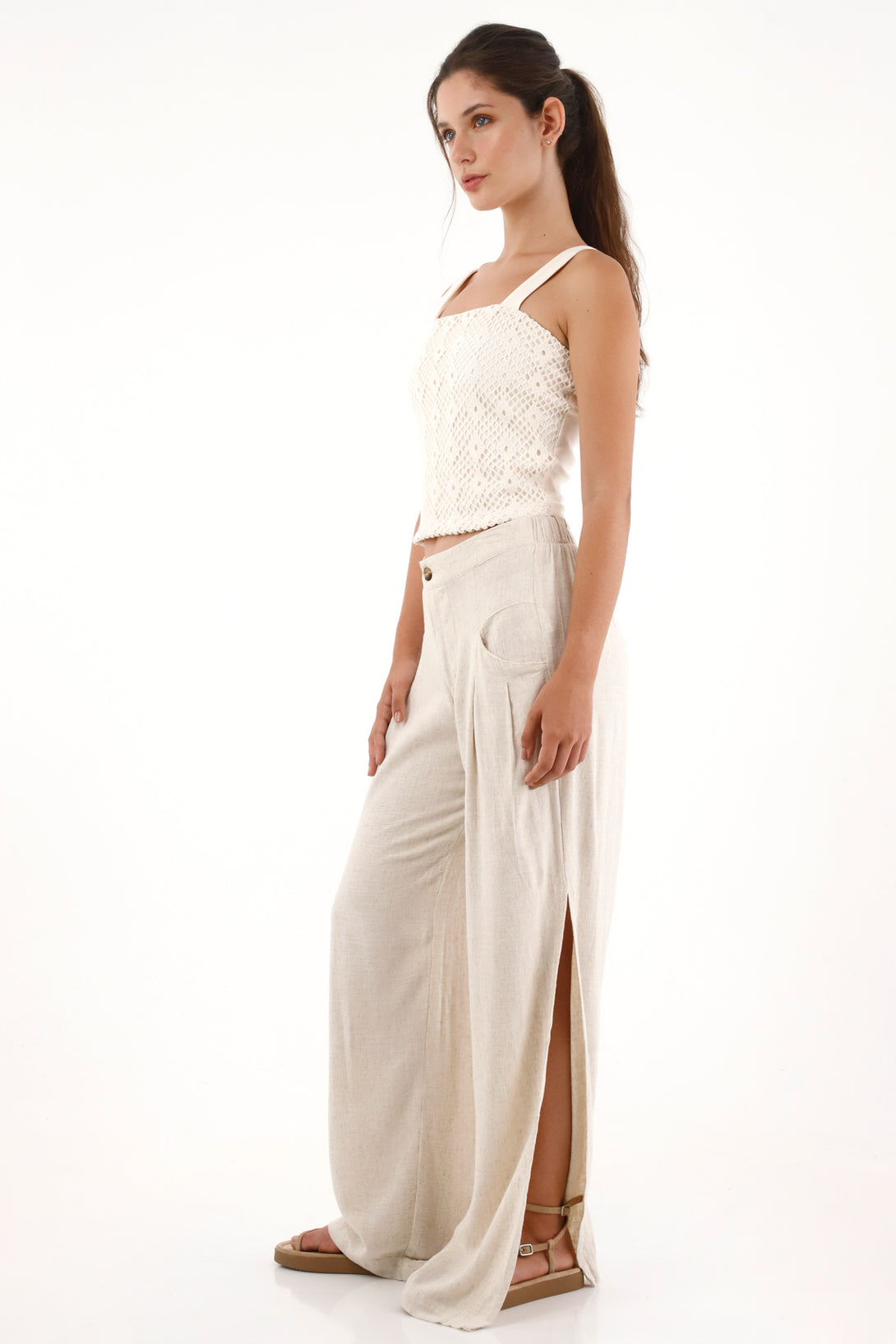 Experience movement, texture, and style with our Women's Cream Textured Pants! Perfect for summer looks and designed to keep you comfortable, you have just found your go-to pair.
