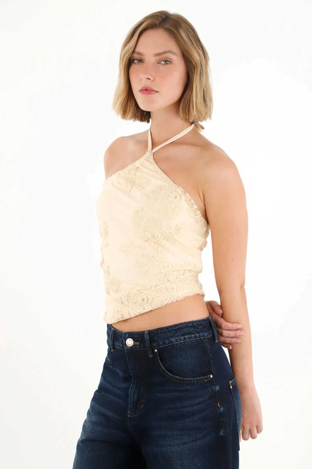 Women's Yellow Embroidered Scarf Top