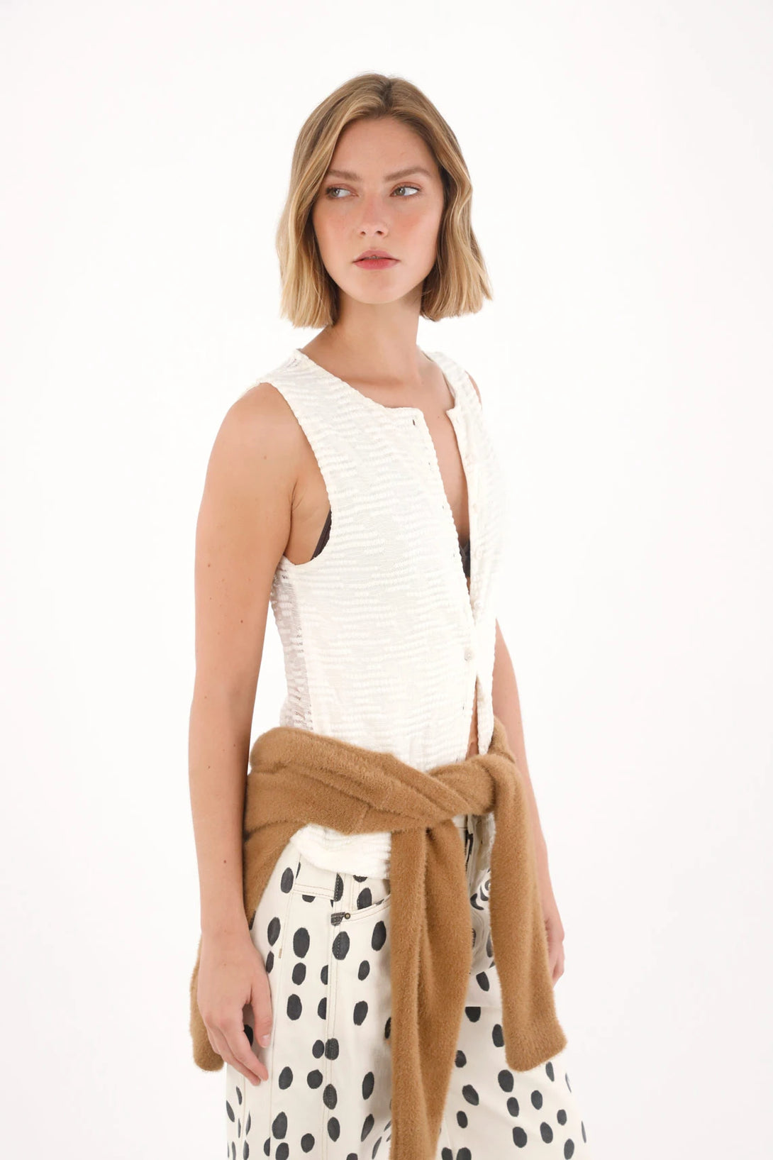 The new cool basic your closet has been waiting for! This sleeveless t-shirt reinvents simplicity with a fresh, modern vibe.